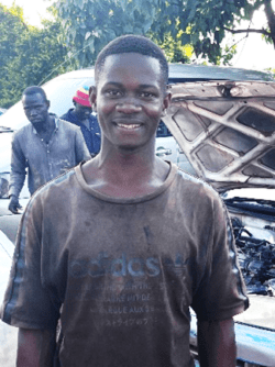 22 year old Lamek used to work 7 days a week as a shoe shiner. When he heard about our vocational training project on local radio, Lamek was excited about the opportunity to learn Motor Mechanics. As a child he used to spend time in his uncle’s garage, helping him with small mechanical jobs. From this time he knew he wanted to learn to be a mechanic.