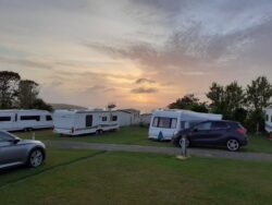 The walk today takes me from Treyarnon Bay to Newquay. I’m caught in a violent rain squall on the cliff top somewhere above Bedruthan Steps, and I only just get the poncho on in time. The rain doesn’t last long, and by the time I reach Mawgan Porth and stop for lunch (another pasty, another one better than the pasty of Appledore) the sun is back out again. Continuing on past Watergate Bay it looks like they are starting to set up for Boardmasters Festival. The path then enters Newquay, where I discover The Gannel ferry has been cancelled due to the operator having Covid. A bus around the estuary is the only option. I pitch up on Quarryfield campsite, Crantock and watch a pretty good sunset. I book a BnB for tomorrow in St Agnes as the weather is looking bad in the afternoon. Looks like it will be a long day, 13 miles or so.