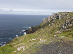 Great news today, the Londis in Boscastle has fruit flavoured boiled sweets, and my original supply ran out in Hartland. Apart from cheese they are my hiking food of choice. And as they’re fruit flavoured, I’m pretty sure they count as one of your 5 a day. These even have some blue coloured ones in the pack. I’m looking forward to trying those – I’ve seen what blue food can do to kids at birthday parties. I suppose it sounds strange to class a 5 mile walk with a 12kg pack a rest day, but that’s exactly how it feels. No sooner as I leave Boscastle it seems I’ve arrived in Tintagel, put the tent up, and gone to get a pasty for lunch. This one is far superior to the ‘best pasty I’ll ever taste’ of Appledore. The walk is pleasant, not too strenuous, with good views and a descent into a nice rocky chasm. I have a wander around Tintagel centre. If you’re after cosmic witchcraft trinkets, pasties and replica Excalibur swords then this is the town for you. I meet Dan and his mate Neil on the campsite. Dan is doing the whole walk in one like me to raise funds for a charity, Neil is supporting for a couple of days. There is also Lisa, who is doing the walk solo, and has 8 weeks like me. There are a lot of people doing the SW Coast Path in one go, more than I would have thought. We go to the pub for a couple of drinks and discuss the usual subjects of tents, pack weights, hardest bit so far, etc.