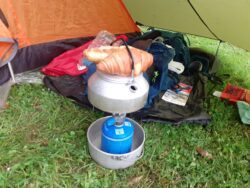 A couple of top tips from the trail: 1) You can hang your washing to dry from your rucsack using one of those clips that kids have their gloves fixed to their coat sleeves with. 2) You can make a quick, relatively filling and reasonably edible meal using a pouch of Uncle Ben’s quick cook rice, a tin of sardines in tomato sauce, and some chopped up chorizo. Just mix it all up and heat by any method for 3 mins. I have named this taste sensation “Poor Man’s Paella”. It’s about as Spanish as Manuel the Waiter from Fawlty Towers, but its light to carry and is better than it sounds!