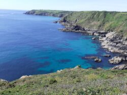 We leave the rest site by 7.30 am and have a good run down the A35 and A30 which means I am walking again by 10.30am. The coast path is deserted, and its a massive contrast to last night with 25,000 people in one place. My wife, Nina, drops me off in Portscatho, a couple of miles from the official start point of this leg, but the last village reasonably accessible to a campervan. The route takes me through and above numerous empty coves, all with clear turquoise water and the odd cormorant drying is wings on a rock. This is an empty and unspoilt corner of Cornwall for sure. I have lunch in the sleepy fishing port of Portloe, where a few locals seem to be sitting in gardens and chatting or drinking tea. Since the Lizard that seems to be the occupation of choice round these parts. That and running disorganised ferry services. Nina meets me in Hemmick Cove, where I have a quick beach swim, and we return on foot to the luxury of our campervan for a solid night’s sleep. It’s been a long few days and a hot 16 miles or so today, and I’m feeling it.