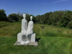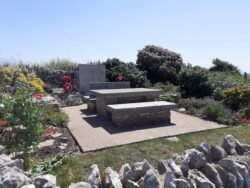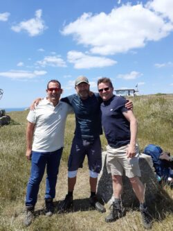 Whilst trying to get a photo of the Chapel at St Aldhelms Head in the same position as the one I took during my training walk here back in Easter, I notice 2 shortish, roundish blokes sitting on the plinth of the radar memorial. They don’t register with me until I pass them, when they
