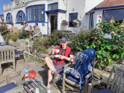 Brixham to Torquay today. I meet Brian, a friend from home who has come down for a couple of days walking just outside the town and we head along the coast path towards Paignton. There are some nice bays and beaches, also quite a bit of urban walking for a change. We stop in Paignton for lunch at a Las Iguanas restaurant and it’s probably the best midday meal I’ve had on this walk. We carry on towards Torquay, the route getting more steep and we stop at Babbacombe beach for a tea before heading to the hotel Brian has booked. £39 for a twin room so it must be good. I check out my sleeping mat in the shower to find the leak. I had to blow it up 7 times over the last 2 nights so I’m happy to find a small pinprick bubbling away. I’ll let it dry out overnight and try the patch that came with it. Sounds easy.