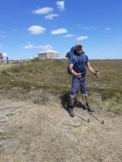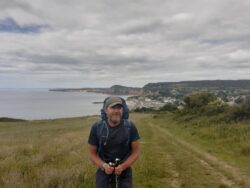 At St Aldhelm’s Head with the 12th century chapel in the background