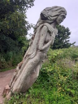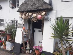 My pal Chris is joining me today, and we leave the campsite heading for Clovelly. Quite soon we descend into a bay filled with driftwood, including a dragon or sea horse type head rising vertically from the pile of timber. We stop for a lunch break at Peppercombe, then continue our walk along an old coaching road, arriving at Clovelly – a very unusual privately owned village – and book into our Airbnb for the night.