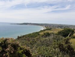 Leaving the campsite this morning I swap details with Nick, as he helps to run a charity who build schools in Cameroon. I also get details of the wine he kindly shared with me last night as it was very good. At Slapton Sands I stop for an egg bap and coffee, 2nd breakfast of champions, then it’s on across Slapton Ley and an ascent to the cliffs above. There is more WW2 history at Slapton; The ill fated D-Day landing rehearsals which ended in tragedy as a number troop carriers were sunk in the fog by German torpedo boats. A Sherman tank was raised from the sea bed as a memorial. A German couple stop for a chat along the way, and we discuss their walk from Poole, wild camping spots and other coast path related chat. They are very friendly.