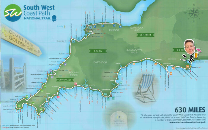 At the start of the South West Coast Path. 630 miles to go.
