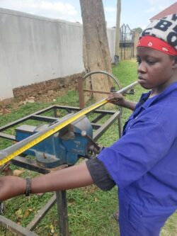 Trainees have supported community organisations, refining and showcasing their skills and providing valuable resources for the local community. Tailoring graduates produced 650 Reusable Sanitary pads for four Community Primary Schools, and Welding graduates made twenty bunk beds for the training centre hostels as part of their work experience.