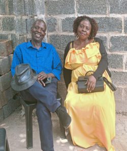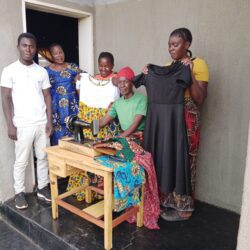 Mr & Mrs Mumba, pictured left, graduated from our vocational training project with Eliashib in 2016. Two years later they registered their own business combining knitting and tailoring to make school uniforms, jerseys, dresses, medical coats and work suits. In 2024, Mr & Mrs Mumba returned to the Eliashib training centre to share their inspiring story with participants of our Transition to Work project, supporting new graduates as they begin to build their businesses.